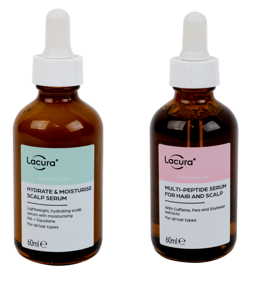 Aldi’s popular health & beauty brand, Lacura, is set to welcome the NEW stimulating Multi-Peptide Serum for Hair & Scalp (£3.99, 60ml) and protecting Hydrate & Moisturise Scalp Serum (£3.99, 60ml) to stores nationwide this spring.