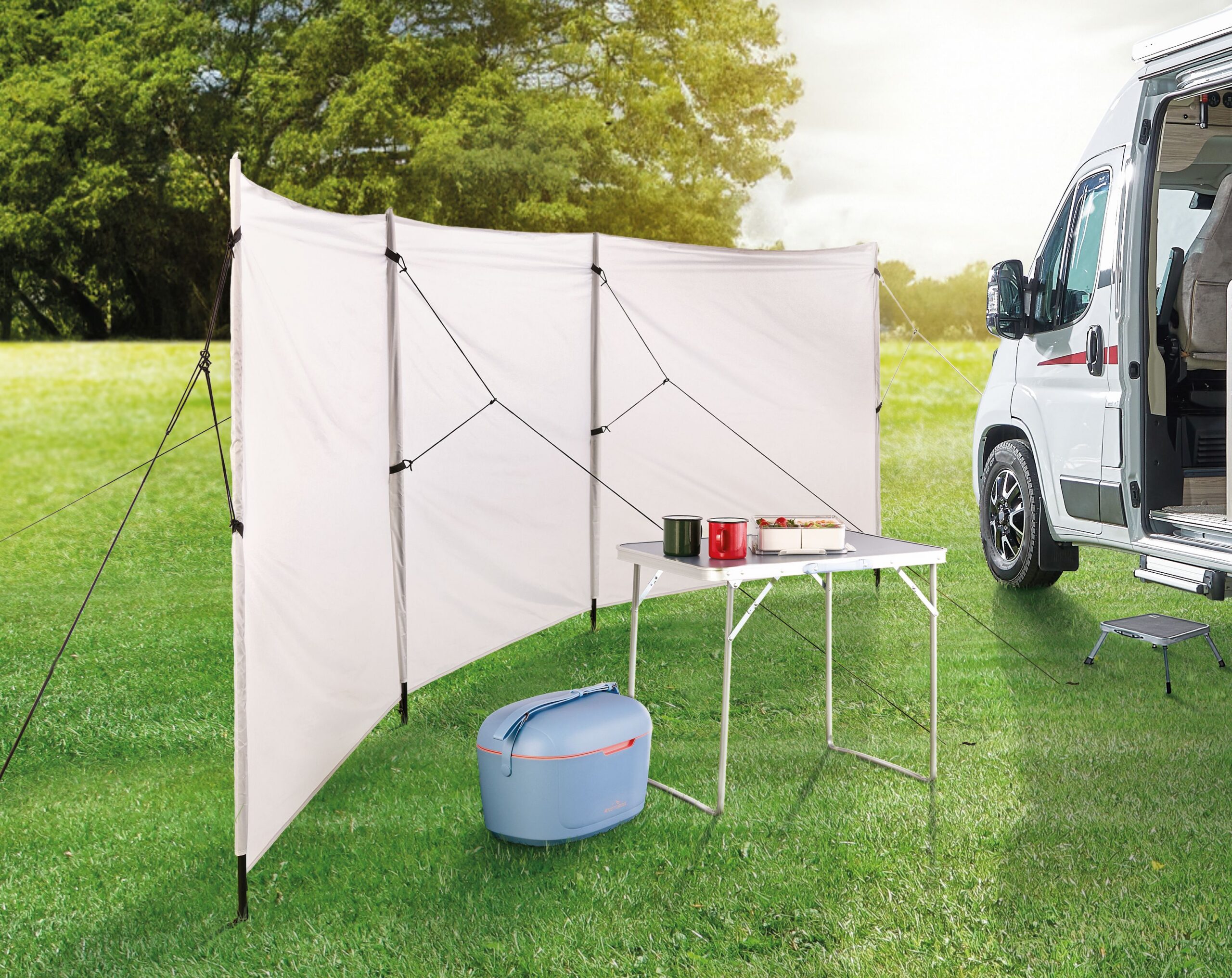 Campers can come prepared with Aldi’s Retro Cool Box (£24.99), available in vibrant pink and blue, which keeps drinks chilled for up to seven hours. Refreshments can be enjoyed around the foldable Picnic Table (£12.99), which includes a handy carry case for travel. Aldi’s Windbreaker (£14.99) keeps gusts at bay while offering added privacy. It comes complete with poles and securing ropes, making it simple and convenient to set up at any campsite.