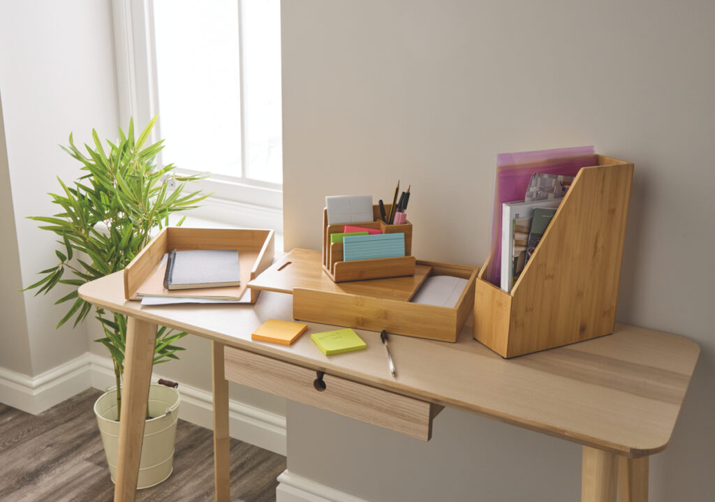 Stay organised with the chic Bamboo Desk Storage (£4.99 each). Choose from a Desk Caddy, In Tray, Magazine Holder and Storage Box to keep every item in its place.
