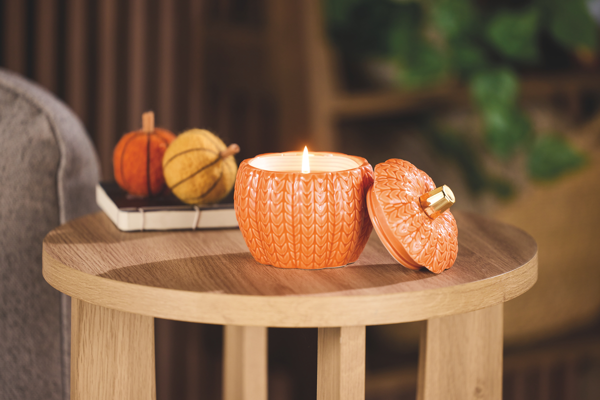 The NEW Decorative Pumpkin Candle (£6.99, 200g or 170g) offers an affordable alternative to high-end versions.